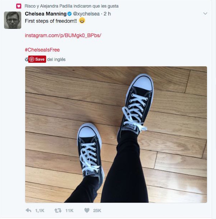 Manning compartió su primera imagen en libertad. Foto: Instagram de