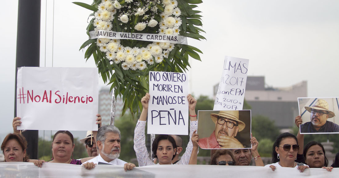 Los reporteros de Sinaloa y del resto del país realizaron esta semana actos de protesta. “En México nos están matando”, escribieron una decena de reporteros a los pies del Ángel de la Independencia, en la Ciudad de México junto a la frase “No al silencio”, hecha con las fotos de periodistas asesinados en los últimos años. En otros lugares se repetía la exigencia de justicia.