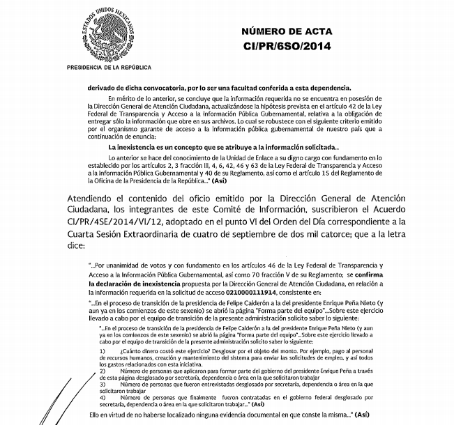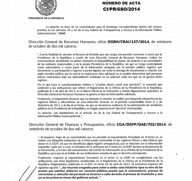Casi cinco años después cuando el Gobierno de Enrique Peña Nieto está a punto de expirar, no es posible evaluar los resultados de esta convocatoria, si es que los tuvo. Ante el Instituto Nacional de Acceso a la Información Pública y Protección de Datos Personales (INAI), la Presidencia de la República declaró inexistentes los resultados de esta medida. “Inexistentes” el número de personas que enviaron su currículum y si alguna fue contratada.