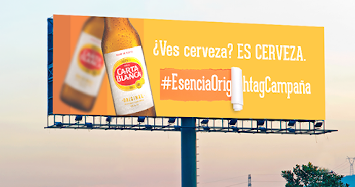 Ahora, la cerveza Carta Blanca publicó en su cuenta de Facebook la fotografía de un espectacular acompañada de la frase: "Hashtags vemos, escencias no sabemos. Carta Blanca, esencia original".