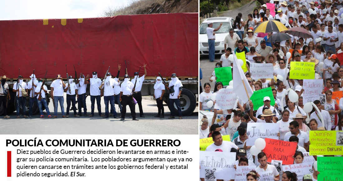 El Fiscal de Guerrero, Javier Olea Peláez, acusó al Diputado priista Saúl Beltrán Orozco de ser el líder de Los Tequileros, grupo criminal que asedia la región de San Miguel Totolapan. En un video difundido se escucha decir al funcionario: “Tengo perfectamente la radiografía, y ya les dije, 'El Tequilero' número uno se llama Saúl Beltrán Orozco, punto, pero tiene fuero”. En otro lugar de la entidad, la autodefensa que se constituyó el domingo pasado en nueve pueblos de Eduardo Neri, Zumpango y en uno de Tepecoacuilco, detuvo en Plan de Liebres, a un agente de la PGR y a un civil que no pudo acreditarse como agente de esa corporación. Los nuevos policías comunitarios les encontraron tres cargadores abastecidos para esa arma larga y cuatro para la pistola.