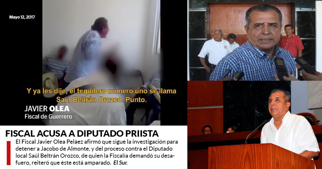EL martes 30 de mayo, el Fiscal Javier Olea Peláez afirmó que sigue la investigación para detener a Jacobo de Almonte, y del proceso contra el Diputado local Saúl Beltrán Orozco, de quien la Fiscalía demandó su desafuero, reiteró que éste está amparado.