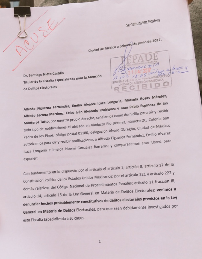 Ciudad de México, 1 de junio (SinEmbargo).- Emilio Álvarez Icaza y otros integrantes de la organización Ahora denunciaron ante la Fiscalía Especializada para la Atención de Delitos Electorales (Fepade) el desvío de recursos federales para la campaña del candidato priista al Gobierno del Estado de México, Alfredo del Mazo Maza.