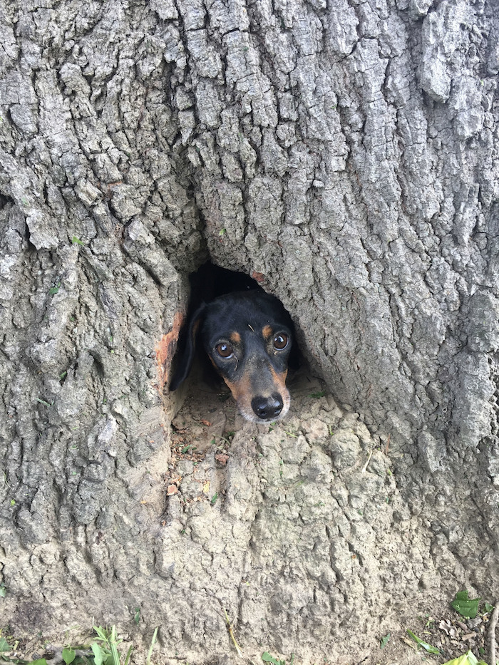 Salem, Kentucky, EU, 4 de junio (AP).- No, no era un pájaro atorado en un árbol, tampoco un gato; se trataba de un perro salchicha que tuvo que ser rescatado por un par de policías y un bombero cuando se quedó atrapado dentro del tronco.