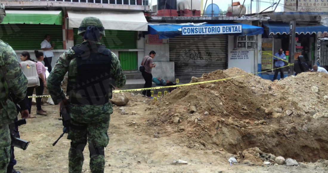 Hasta las 5 de la tarde peritos de la Fiscalía General del Estado realizan las diligencias mientras que policías estatales y militares bloquean el paso en la avenida Insurgentes y continúan las operaciones de búsqueda.