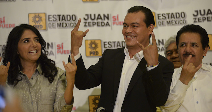 El domingo, después de uno de los mensajes del PRD por los comicios en el Estado de México, Zepeda y el equipo que lo acompañaba levantaron las manos con la señal, y Barrales se mostró confundida.