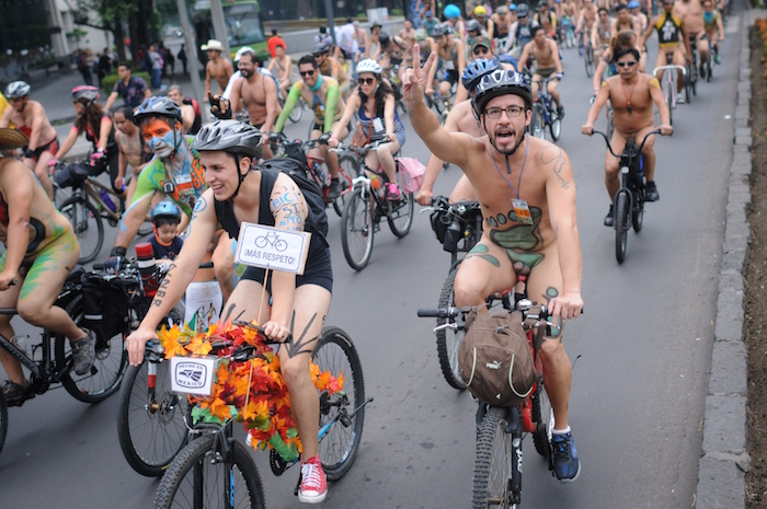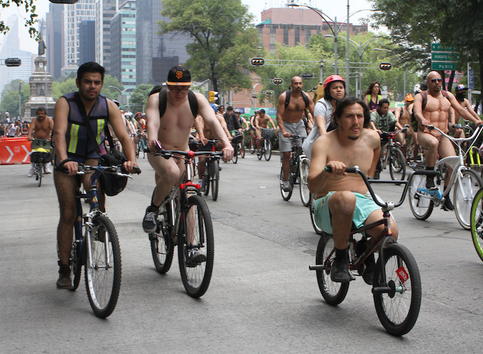 La Ciudad de México se sumó a la Rodada al Desnudo. Cientos de ciclistas se reunieron en el Monumento a la Revolución y condujeron sin ropa hasta el Campo Marte.