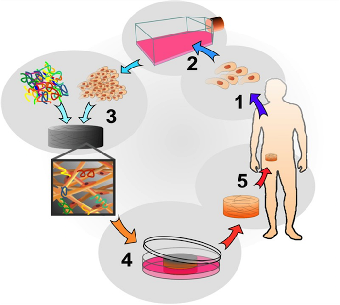 Las células se obtienen del cordón umbilical humano y pasan por los procesos de cultivo, alimentación y crecimiento en incubadoras, después se trasplantan a los andamios que hacen en el laboratorio para su crecimiento en células especializadas.