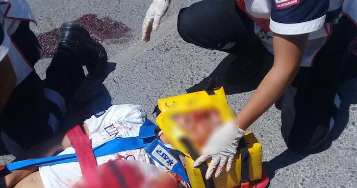 Fue en la salida a la colonia Loma Linda, que el joven se fue sobre la banqueta de la cuchilla y la tomó como rampa para de ahí salir disparado. Del vehículo salió el menor y posteriormente el padre, quedando ambos sobre el pavimento.