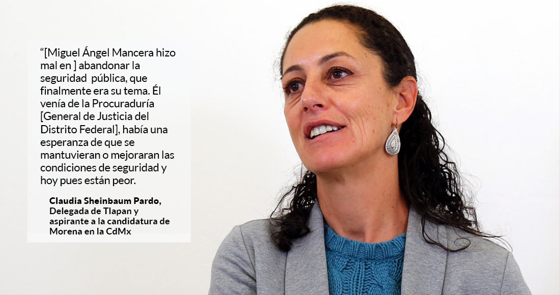 En entrevista con SinEmbargo, Sheinbaum dice que ve tres grandes problemas en la Ciudad de México, aunque aclara que hay muchos más: La movilidad, el tema ambiental y la seguridad. Temas que acusa en el gobierno de Miguel Ángel Mancera Espinosa se han "estancado" o, de plano, "abandonado".