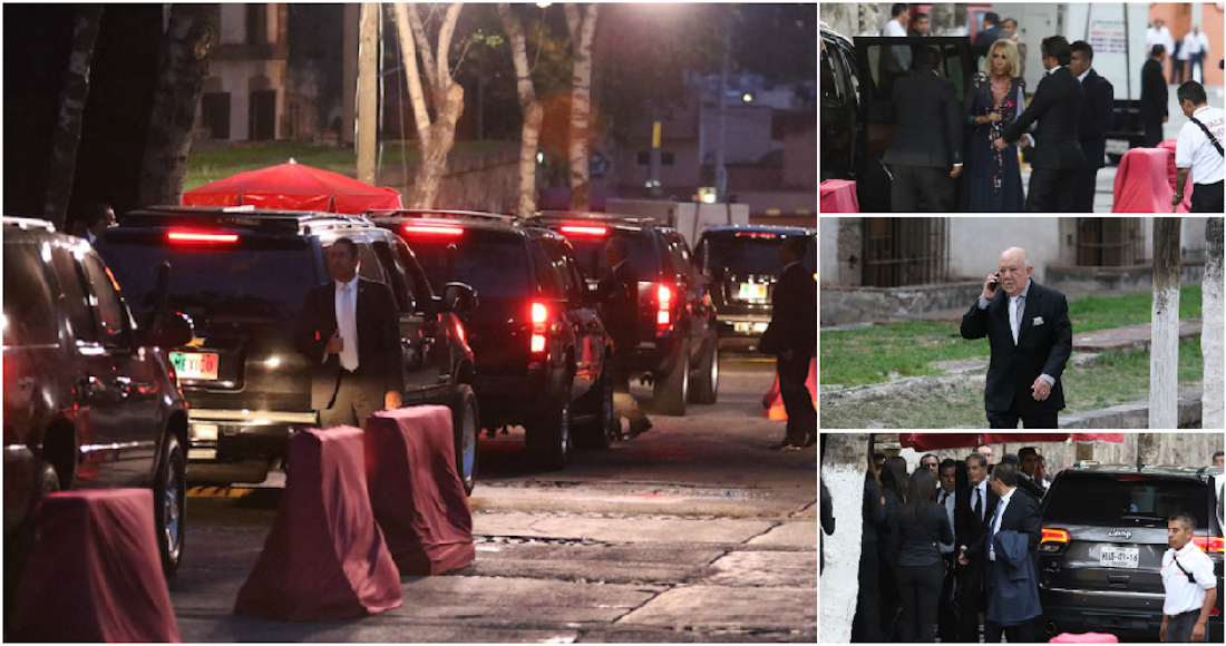 El acceso a la ex Hacienda de Santa Mónica fue por la calle Ignacio Manuel Altamirano, donde se implementó un operativo de seguridad para recibir a los más de 600 invitados que bajaban de camionetas Suburban, Infinity QX56, Denali, Tahoe, Yukon, Traverse, Patriot, Escalade y Grand Cherokee, y automóviles Mercedes Benz, Porsche y Audi, entre otros.