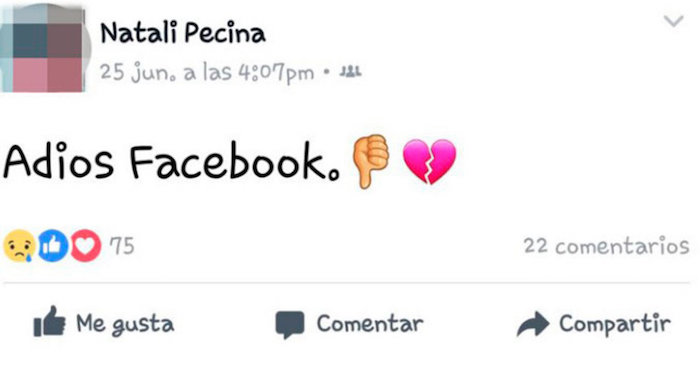 Se despidió de sus amigos con un “Adiós Facebook”, acompañado por un corazón partido.