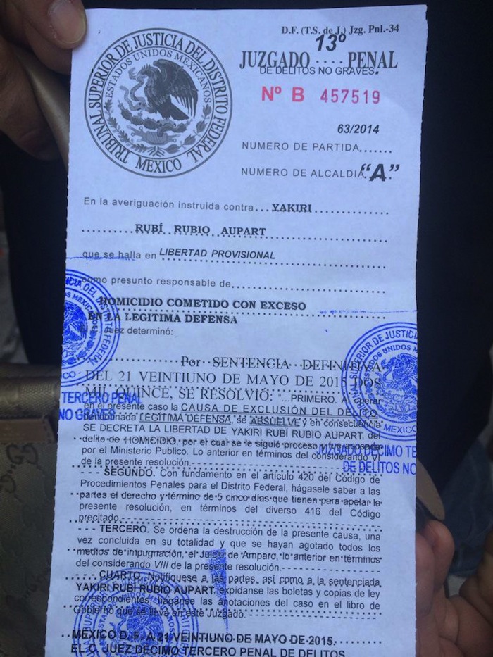 Ciudad de México, 1 de julio (SinEmbargo).– En diciembre de 2013, la joven Yakiri Rubí Rubio Aupart fue secuestrada en la Ciudad de México por dos hombres que la condujeron a un hotel para violarla. Luego de ultrajarla, uno de ellos intentó asesinarla. Ella acabó matando al agresor en defensa propia; sin embargo, la Procuraduría General de Justicia de la Ciudad de México, entonces comandada por Rodolfo Ríos Garza, la acusó de homicidio calificado y la encarcelaron.
