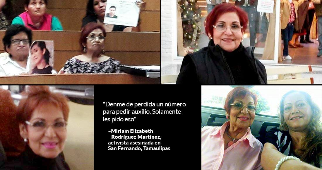 El caso de Miriam Rodríguez tal vez sea una muestra del costo de la batalla contra el olvido a sus familiares en Tamaulipas. Ella fue ejecutada el pasado 10 de mayo, Día de las Madres, por personas ligadas a la desaparición y asesinato de su hija Karen Alejandra, crímenes que ella misma investigó y ayudó a llevar a parte de los responsables a la cárcel.