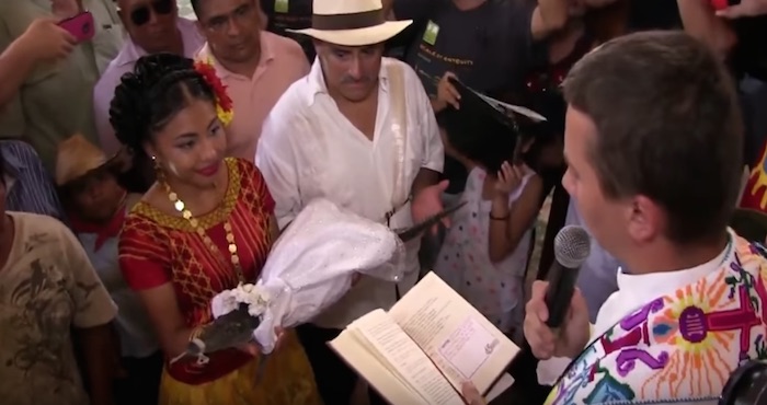 México, 3 de julio (EFE).- Los pueblos chontal y huave celebran una centenaria alianza en el estado de Oaxaca con una boda en la que el Alcalde de San Pedro Huamelula se casa con una princesa de bellos ojos jaspeados, solo que en este caso la novia es un caimán.