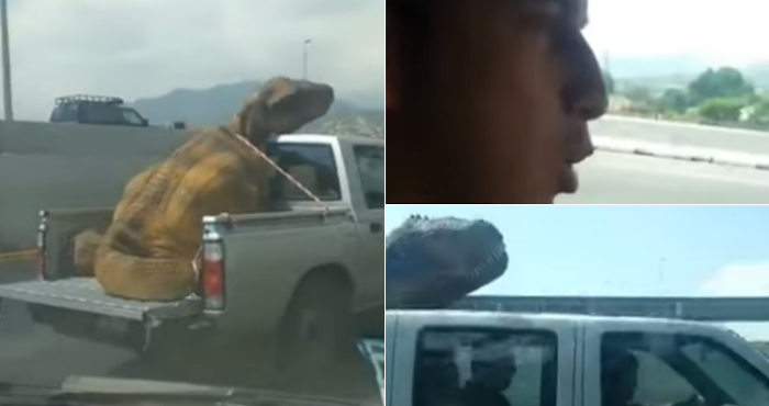 “Aquí nada más para hacer un reporte de cómo tratan a los dinosaurios'', dijo el joven que grababa en un vehículo, desde el cual podía apreciarse un dinosaurio de juguete.