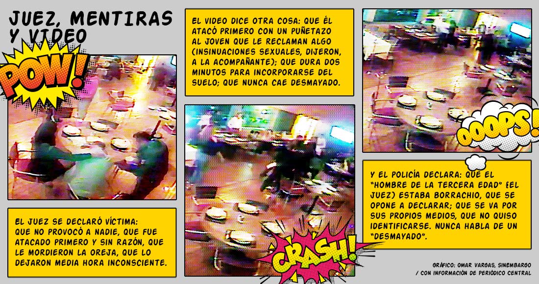 Ayer, este periódico digital publicó el video con el que se comprueba que el Juez mintió en su declaración ante el Ministerio Público sobre cómo sucedieron los hechos la noche del 30 de junio, pues él dijo que estaba sentado y fue atacado sin razón, cuando en realidad se trató de una riña.