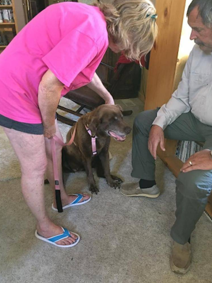 La rescatista de perros, Cheri Glanker, encontró a una retriever hambrienta que se había desmayado en un rancho cercano el mes pasado, según información del periódico Idaho Statesman.