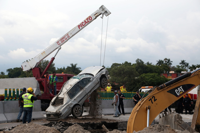 Ayer, dos hombres viajaban en su automóvil sobre la autopista cuando un tramo de la vía colapsó y cayeron a un socavón de al menos cinco metros de profundidad, de donde sus cuerpos fueron sacados varias horas después.