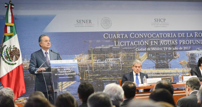 Ciudad de México, 19 de julio ( SinEmbargo).- La cuarta licitación petrolera de la Ronda Dos (2.4) en aguas profundas se realizará el 31 de enero de 2018 y se espera que podría atraer inversiones de al menos 31 mil millones de dólares en caso de adjudicar por lo menos el 25 por ciento de las 30 áreas que se ofertarán, informó Joaquín Coldwell, Secretario de Energía.