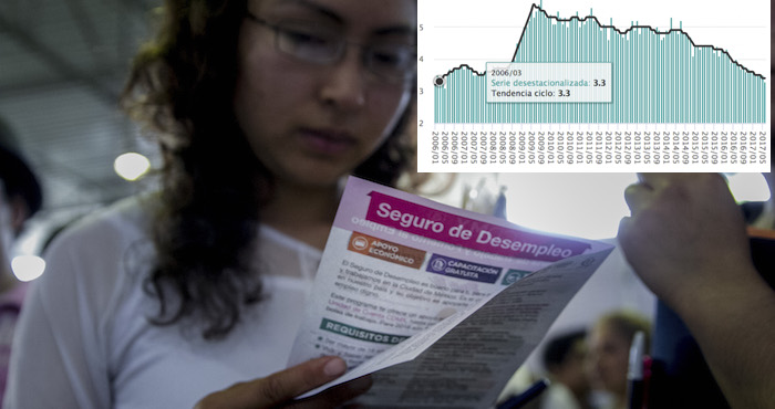 La tasa de desocupación se ubicó en 3.3 por ciento, la más desde marzo de 2006 mes en el que registró un porcentaje igual.