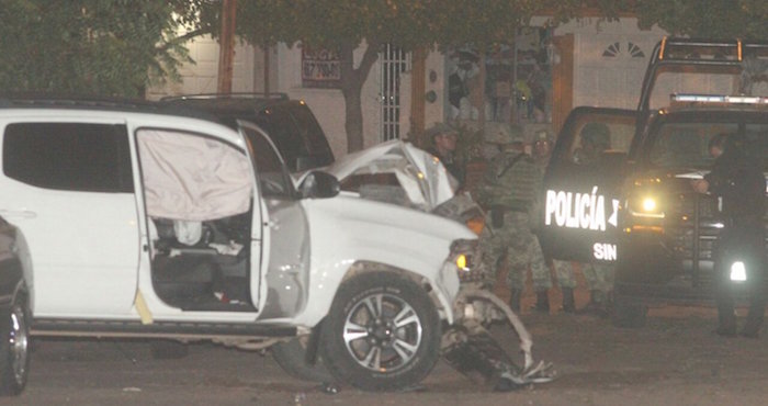 Durante la persecución, los ocupantes de la Tacoma atropellaron a una pareja que circulaba en una motocicleta y luego se metieron a la colonia, donde chocaron la camioneta contra un árbol.