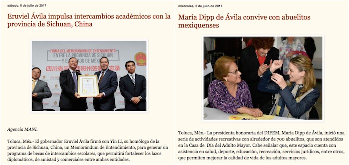 Previo a la elección estatal celebrada el 4 de junio pasado en el Estado de México, varios de los portales a los que el Gobierno de esa entidad pagó por publicidad tenían fuerte actividad. A casi dos meses de distancia de esa jornada electoral, varios de ellos –en su mayoría portales en la Internet– disminuyeron el flujo de sus noticias que favorecían al candidato del Partido Revolucionario Institucional, Alfredo del Mazo Maza.