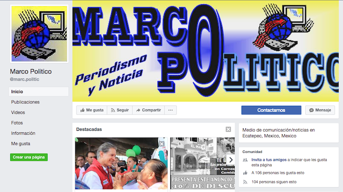 Marco Político. Está registrado como periódico quincenal y está ubicado en Ecatepec [Prol. Venustiano Carranza 20, Luis Donaldo Colosio]. No hay página web ni algún otro registro. Recibió 320 mil 160 pesos en 2016 y 58 mil pesos en lo que va de este año.