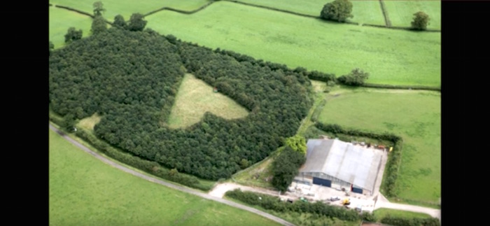 Un bosque en forma de corazón fue descubierto por un operador de globos aerostáticos. El creador es un granjero inglés, quien lo configuró en memoria de su esposa fallecida hace 27 años.