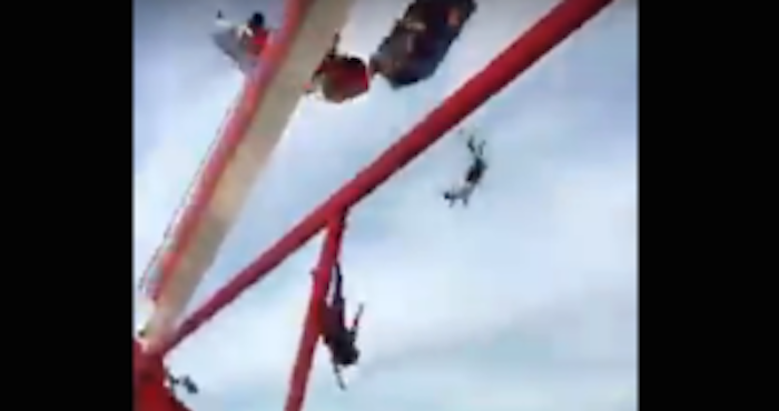 De acuerdo con los vídeos del accidente, una parte del círculo se desprendió en uno de los balanceos de la atracción.