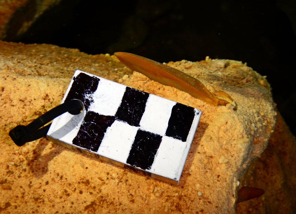 Durante los trabajos que se realizan como parte del Conteo Estatal de Cenotes y Grutas, se halló diversos fósiles sumergidos a 25 metros de profundidad y a 100 metros de penetración aproximadamente, y entre los que se encontraban dos dientes de un tiburón prehistórico.