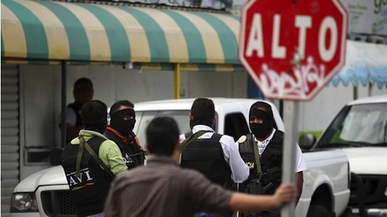 23. Noviembre 24, 2011. Policías de Guadalajara que atendían una llamada de emergencia encontraron tres camionetas abandonadas que en su interior tenían 26 cadáveres en la zona de Arcos del Milenio.