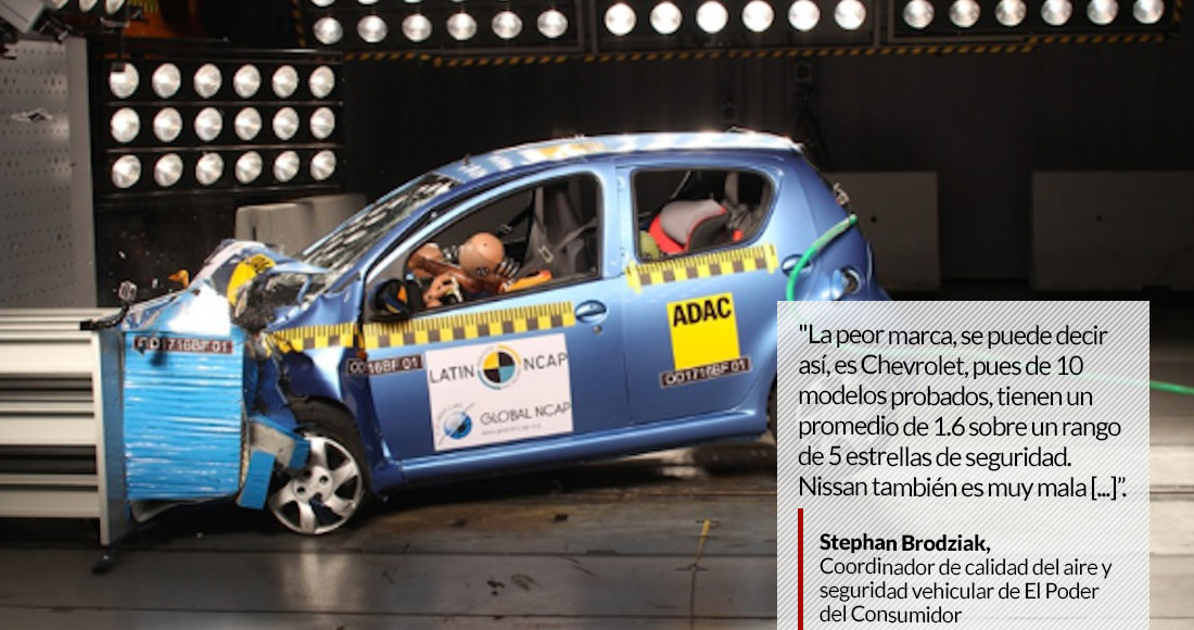 Pese a que el 90 por ciento de los autos que se producen en México tienen ya los mejores estándares de seguridad vehicular, la mayoría son exportados. "Nos quedamos con lo que la industria tenga la bondad de ofrecernos", sostiene Stephan Brodziak, coordinador de Seguridad Vehicular de la organización civil, quien alerta que el contubernio entre las autoridades mexicanas y la industria permite que este tipo de autos entren y sigan en el mercado mexicano.