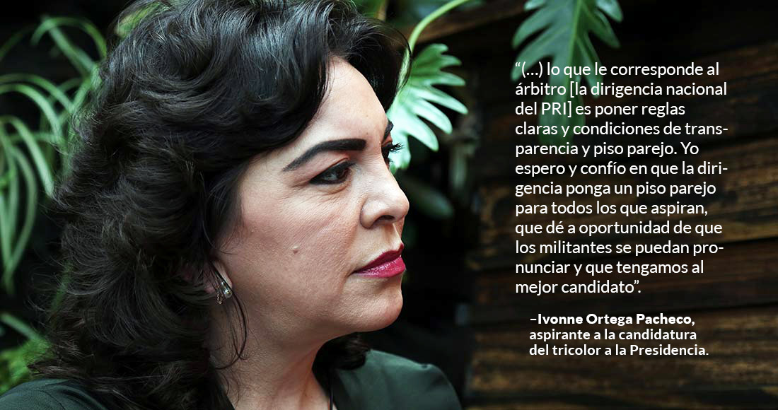 Ciudad de México, 8 de agosto (SinEmbargo).– El “piso parejo” en la competencia por la candidatura presidencial del Partido Revolucionario Institucional (PRI) que busca obtener la ex Gobernadora yucateca Ivonne Ortega Pacheco es la derogación de requisitos en los estatutos que, dice, hacen la competencia más difícil para un militante que para un simpatizante sin trayectoria priista.