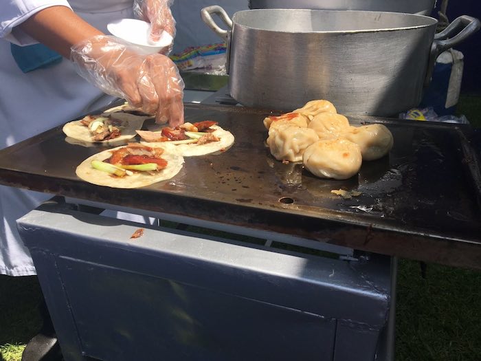 El menú de degustación incluyó pato laqueado, pan relleno chino, rollos de salchicha, ravioles chinos, pastel de luna con piel de hielo y pan dulce con miel.