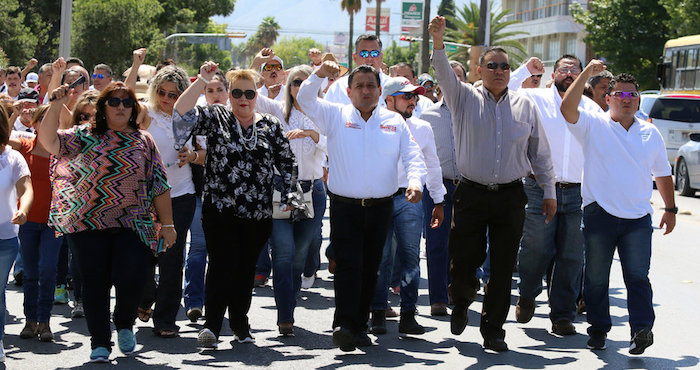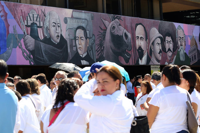 El grupo de profesores encabezados por el secretario general de la Sección 38 del SNTE profesor Xicotencatl de la Cruz García iniciaron la marcha a las 11:00 de la mañana de las oficinas de la Secretaría de Educación del Estado, para tomar el bulevar General Francisco Coss al poniente hasta llegar al Palacio del Poder Legislativo.