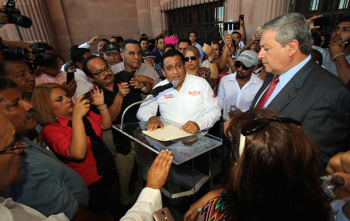Ya en el Congreso del Estado, el el profesor Xicotencatl de la Cruz García entregó al diputado José María Fraustro Siller presidente del Poder Legislativo un documento dirigido al Gobernador del Estado Rubén Moreira Valdés, al legisador Frasutro Siller y al presidente de la Comisión de los Derechos Humanos licenciado Xavier Diez de Urdanivia.