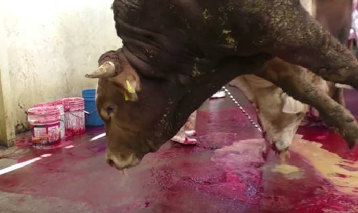 Las investigaciones de Igualdad Animal han revelado que aún conscientes, los animales son apuñalados, golpeados, atados, escaldados (sumergidos en agua hirviendo) y sometidos con choques eléctricos.