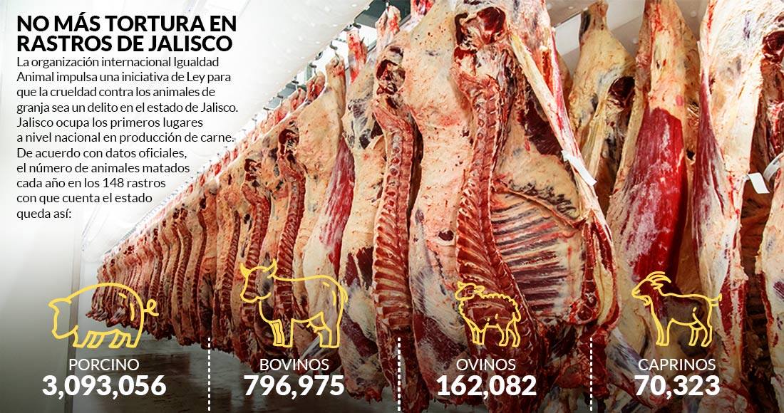 Por esto, y gracias a las investigaciones que la organización ha realizado en rastros y granjas del país, que han demostrado la crueldad y la tortura con que los animales son matados, el Diputado Héctor Alejandro Hermosillo González, del grupo parlamentario Movimiento Ciudadano (MC), presentó una iniciativa de reforma a los artículos 306 y 308 del Código Penal de Jalisco a fin de asegurar que los rastros de esa entidad cumplan con el marco normativo federal.