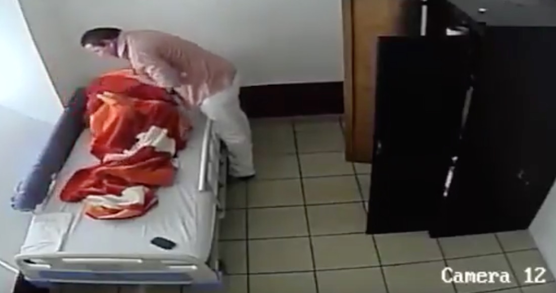 En la segunda parte del material se observa cómo el sujeto jala violentamente de los brazos y piernas al niño para acomodarlo en la cama.