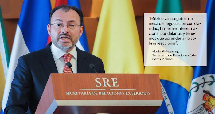 Videgaray pidió que no reinara la preocupación porque, "más allá de sus declaraciones", Estados Unidos está negociando de forma "clara" y con un gran equipo, y si hubiera querido salir del tratado no hubiera esperado al inicio de conversaciones con los otros dos socios.