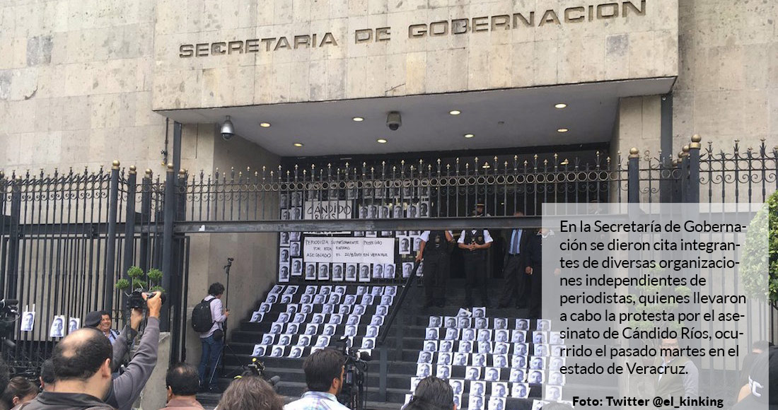 Y sobre las declaraciones de Campa, la ONG dejó en claro que son "sin fundamento", y exigió a la SEGOB un "informe público sobre las medidas provistas así como las acciones que se emprendieron para disminuir el riesgo del periodista Cándido Ríos Vázquez y haga una revisión exhaustiva de los procesos y medidas implementadas que coadyuve a evitar la repetición de agresiones a periodistas incorporados al mecanismo".