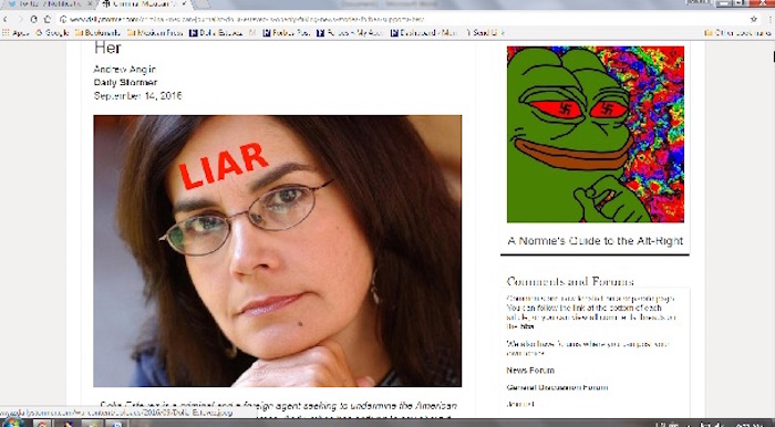 A principios de año, el Southern Poverty Law Center, influyente ONG que combate el racismo y la discriminación, lo acusó de haber orquestado una cruel campaña cibernética contra una familia judía en Montana. Según la acusación, Anglin es el cerebro detrás de un "ejército de troles" especializado en intimidar y aterrorizar en las redes sociales a sus blancos. La demanda no ha avanzado porque Anglin está escondido y la corte no ha podido citarlo a comparecer.