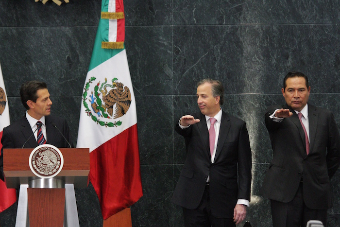 El Presidente Enrique Peña Nieto con los dos más recientes titulares de Desarrollo Social, José Antonio Meade y Luis Enrique Miranda. Foto: Cuartoscuro