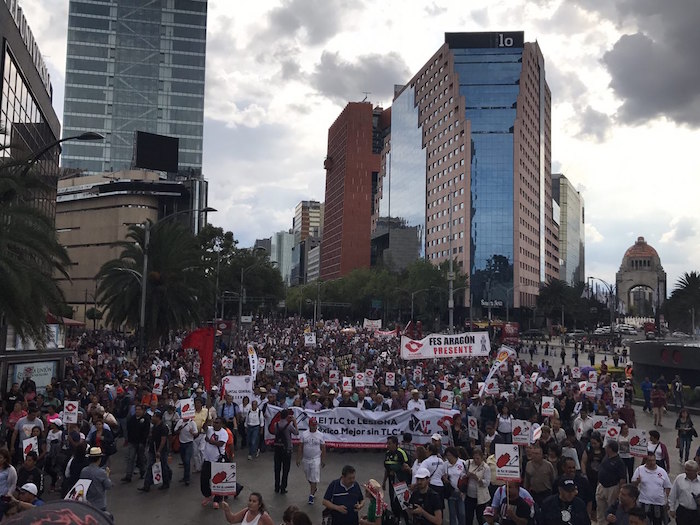 "La negociación del TLCAN es mala porque el Gobierno mexicano es muy débil y Estados Unidos lo ha agarrando como el show, como su chivo expiatorio. El problema es que las negociaciones se están haciendo en lo oscurito y que no se va a estar protegiendo el desarrollo de México, sino la economía de las grandes corporaciones [Coca-Cola y Pepsico]", dijo.