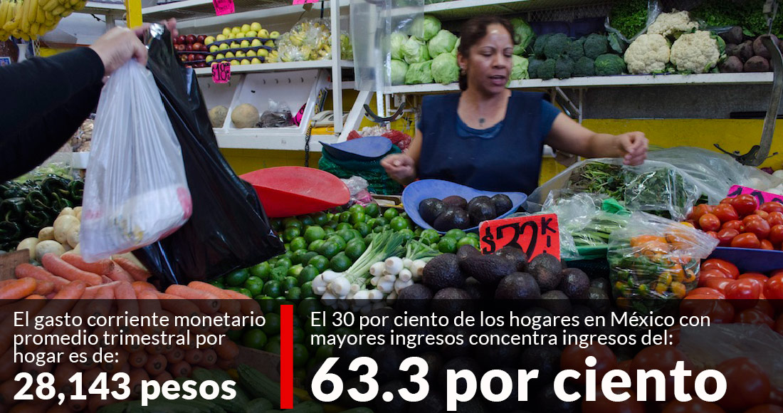 En tanto, el gasto corriente monetario promedio trimestral por hogar es de 28 mil 143 pesos.