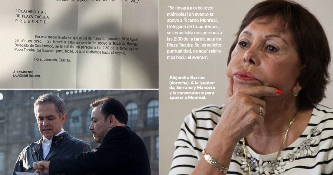 “Monreal es Morena”, gritaron los asistentes, los locatarios del mercado de Tacuba, que responden a la líder Alejandra Barrios, una lideresa que creció en poder en este sexenio en la capital mexicana, junto con su familia, por su cercanía con el Secretario de Movilidad, Héctor Serrano, fueron convocados desde ayer para manifestarse en apoyo al zacatecano.