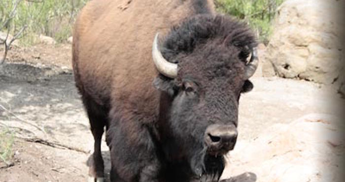 El bisonte es el animal terrestre más grande en Norteamérica. Es inconfundible, tiene una cabeza grande con cuernos curvos y cortos dirigidos hacia arriba, sus orejas son largas pero poco notables, pues están cubiertas por pelaje.