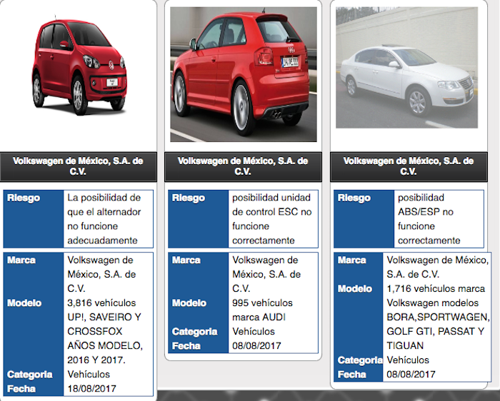 La dependencia emitió este día una alerta rápida tras el llamado a revisión que hizo la propia Volkswagen, luego de que detectara diversas irregularidades en los vehículos mencionados.