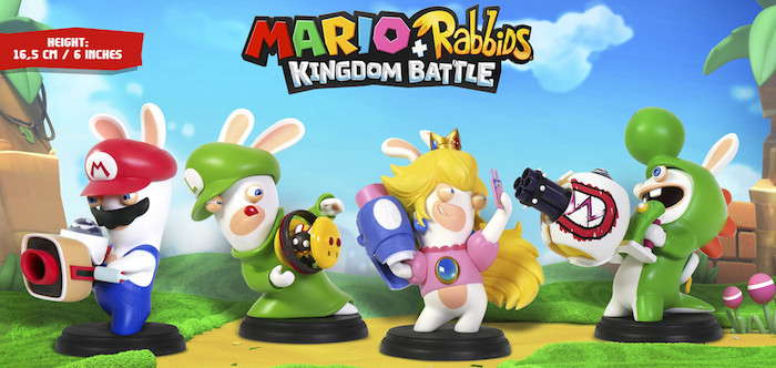 Desarrollado por Ubisoft Montreal y Ubisoft Paris, Mario + Rabbids Kingdom Battle incluye a Mario, la Princesa Peach, Yoshi, Luigi y cuatro héroes Rabbid, quienes se enfrentarán en divertidos combates, acertijos y exploración alrededor de cuatro icónicos mundos. En el modo de campaña, los jugadores formarán un equipo de tres héroes de un grupo de ocho personajes distintos, cada uno equipado con su propia personalidad y habilidades, asegurando que las batallas se desarrollarán de forma diferente de acuerdo a la combinación de los protagonistas elegidos. Mediante una visión estratégica y una colección de más de 250 armas con características únicas, los usuarios tendrán múltiples formas de garantizar la victoria.